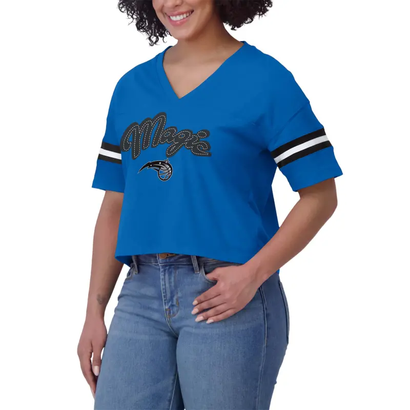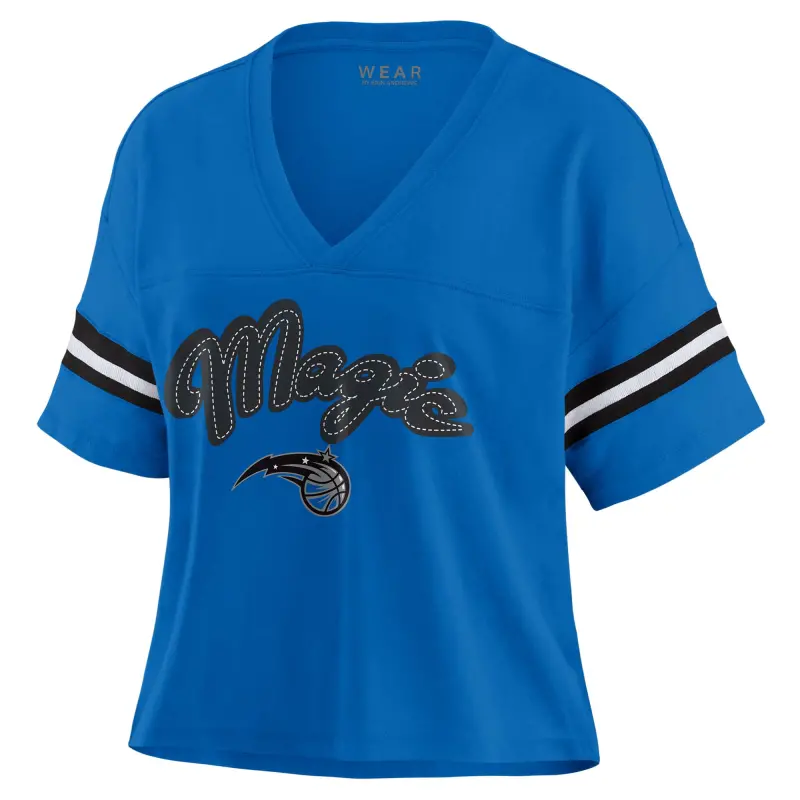 Home / Shop / Orlando Magic / Women’s Orlando Magic WEAR by Erin Andrews Blue Color Block Boxy V-Neck T-Shirt